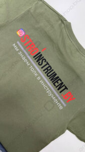 - DTF печать – объединяет в себе полноцветную струйную печать и термопечати (флекс). Это относительно новый метод на рынке цифровой печати не только в Беларуси, но и в мире. Название технологии расшифровывается как Direct to film (DTF), что в переводе с английского означает «прямо на плёнку».